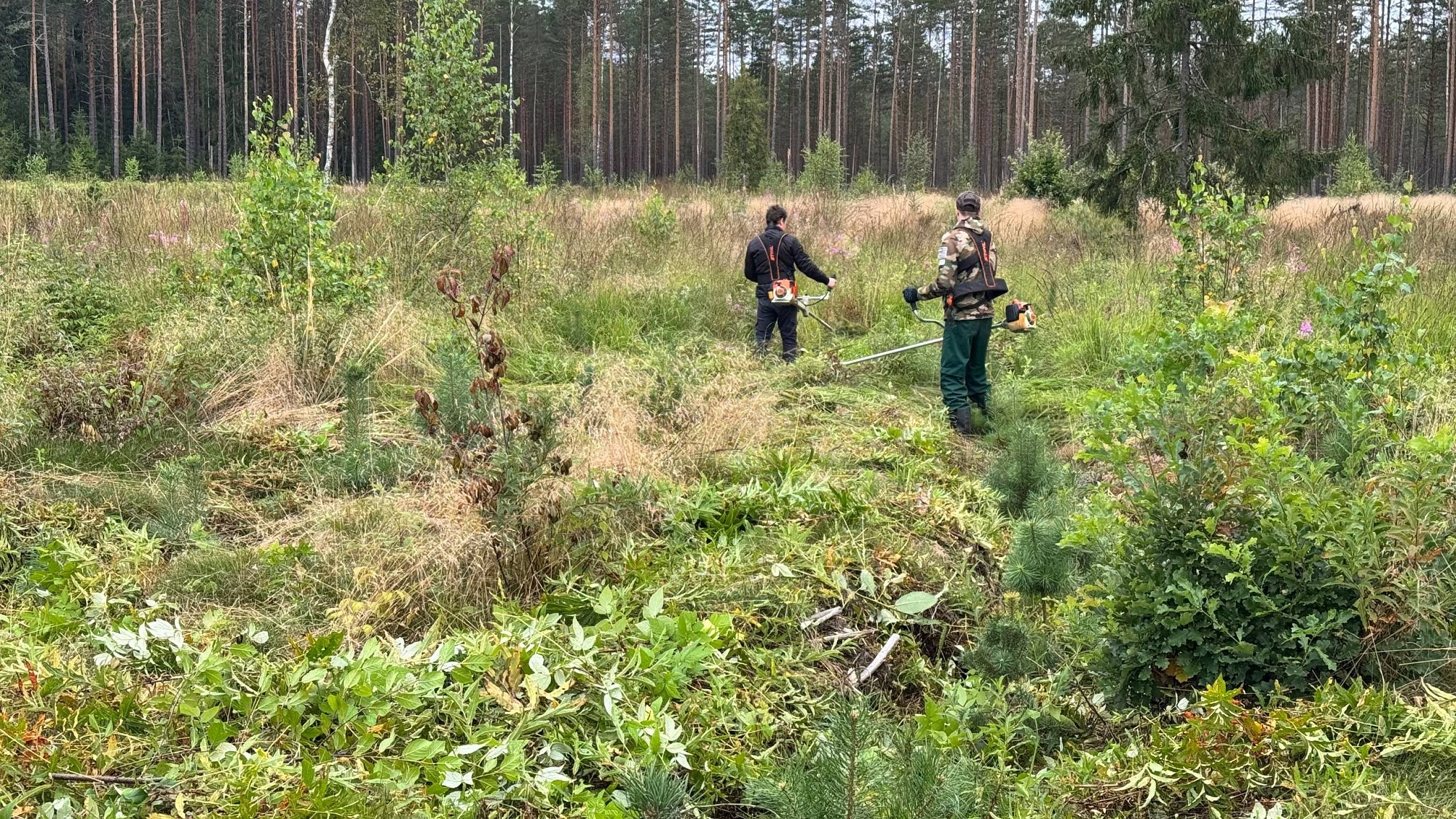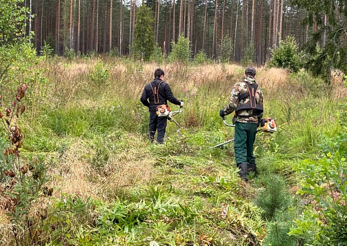 19 августа на территории Струго- Краснинского лесничества Псковской области прошел второй агроуход за молодыми соснами, посаженными весной 2023 года. Бригада из двух человек с помощью тримеров избавила деревья от лишней растительности, которая затеняет им солнце. Осмотр территории показал хорошую приживаемость и отличный рост саженцев. Надеемся, что через пару десятков лет на этом месте будет густой и красивый сосновый лес.