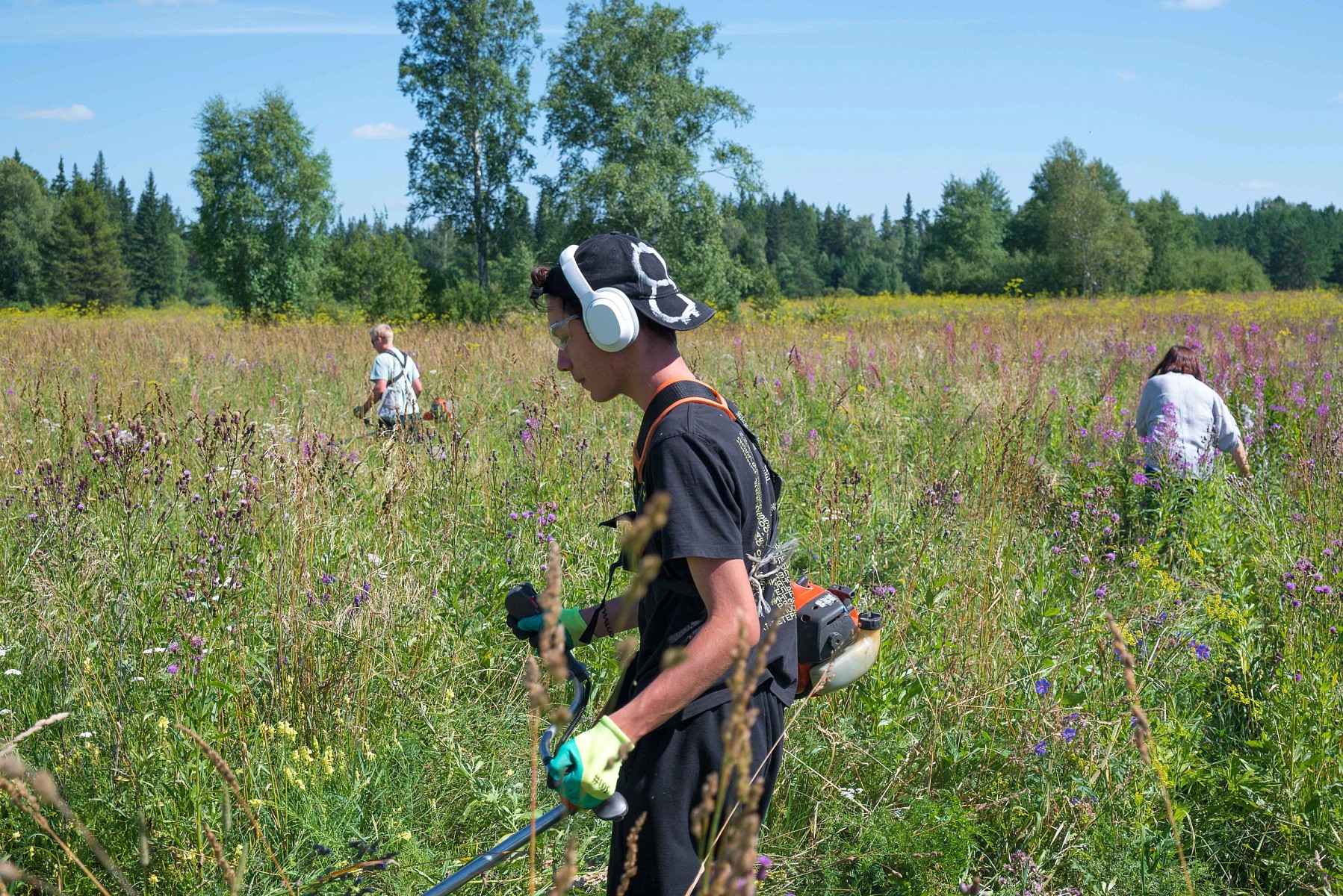 Год назад, в мае 2024 года, волонтеры посадили в Емельяновском районе Красноярского края 4000 саженцев сосны сибирской, а 28 июля 2025 года был организован агроуход 4000 саженцев ели на данной территории при поддержке ИП Труфанов. Его выполнили сотрудники Емельяновского лесничества. В рамках мероприятия потребовалась работа триммерами. С их помощью была убрана лишняя растительность. Приживаемость посадки высокая - около 80-90%.