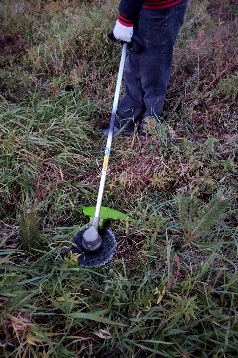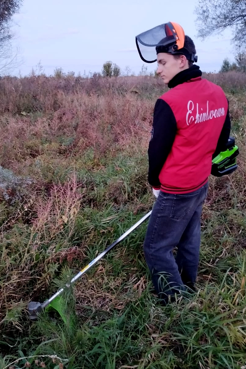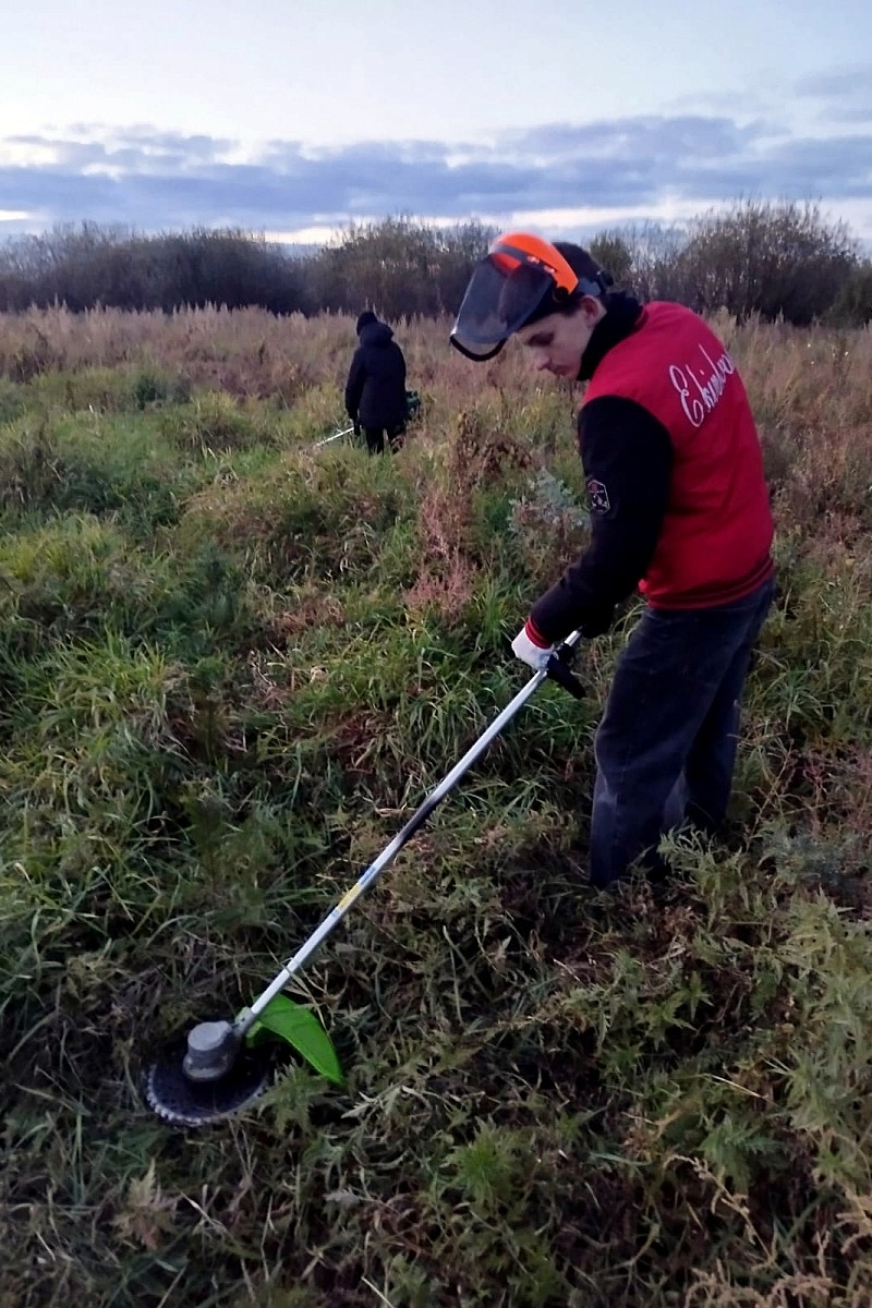 В Звенигородском участковом лесничестве (Одинцовский район) когда-то шумел сосновый лес. Однако его постигла участь многих подмосковных лесов: маленький жучек короед уничтожил высокие сосны и заразил землю. В таких случаях проводят сплошные санитарные рубки и уничтожают больные поврежденные деревья. Они не подходят даже на дрова. После этого лес восстанавливают новыми посадками. Такая посадка была организована весной 2024 года. Но чтобы лес вырос в первые годы роста сосен необходимо проводить агротехнические уходы. Среди таких мероприятий - обязательные окашивания. Дело в том, что трава на первых порах растет гораздо активнее и агрессивнее маленьких деревьев. И попутно трава захватывает и больше места под солнцем и питательных веществ в земле, угнетая сосны. Чтобы этого не происходило и окашивают лишнюю растительность, обходя каждое деревце. Такую работу выполнили волонтеры во время агротехнического ухода 28 сентября 2025 года.
